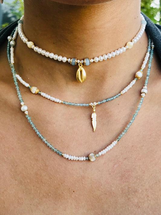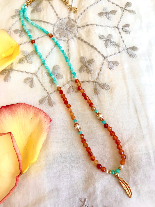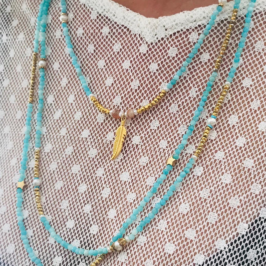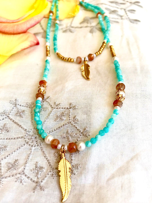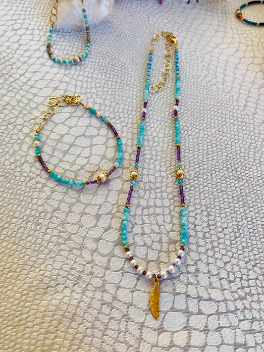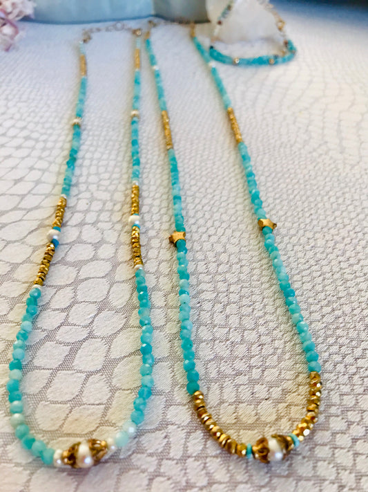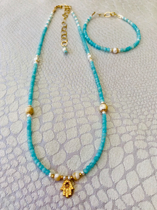 Amazonite & Mother of Pearl Hamsah necklace & bracelet set
