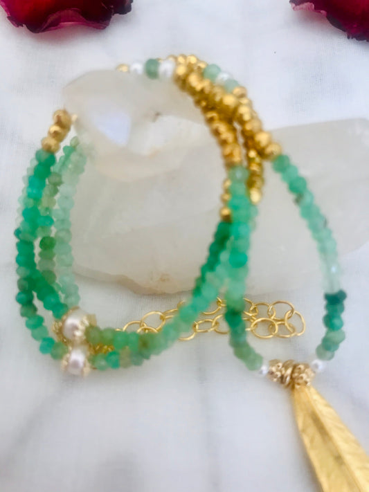 Chrysoprase long Feather Charm Necklace