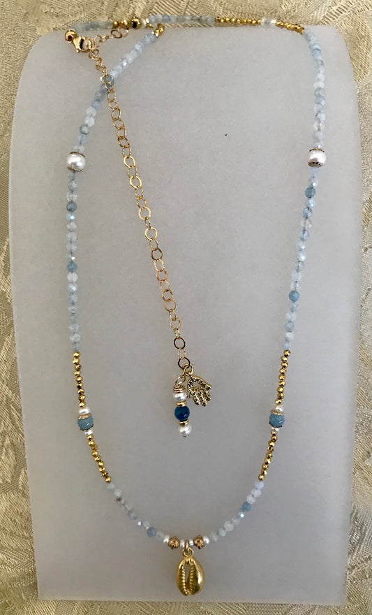 Pearl Aquamarine Choker & Sea shell charm