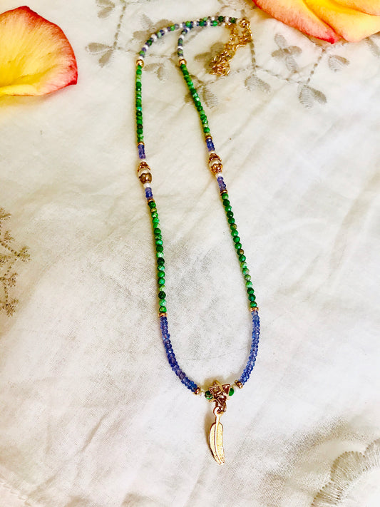 Tanzanite Green Turquoise Merkavah Feather Necklace