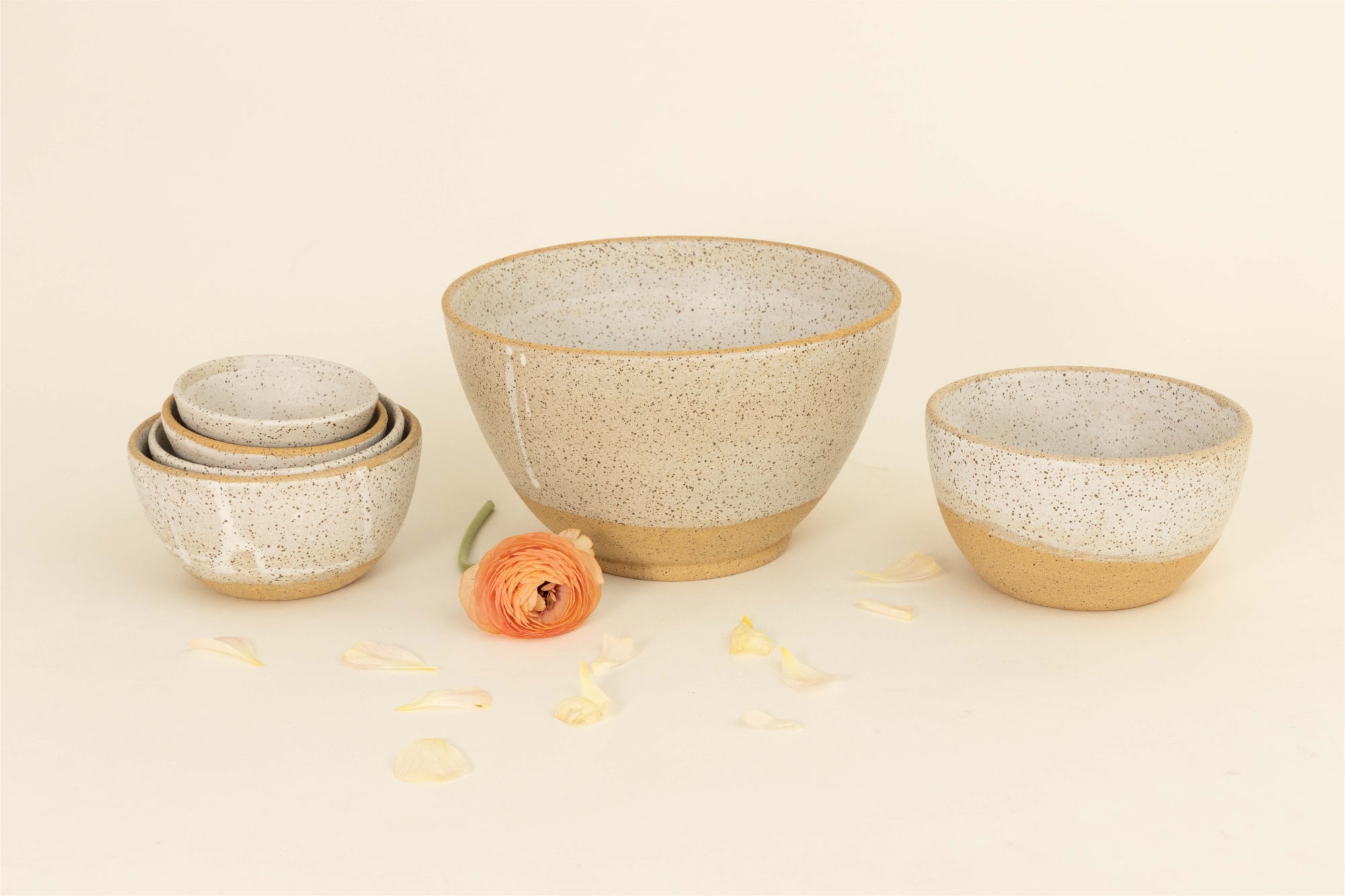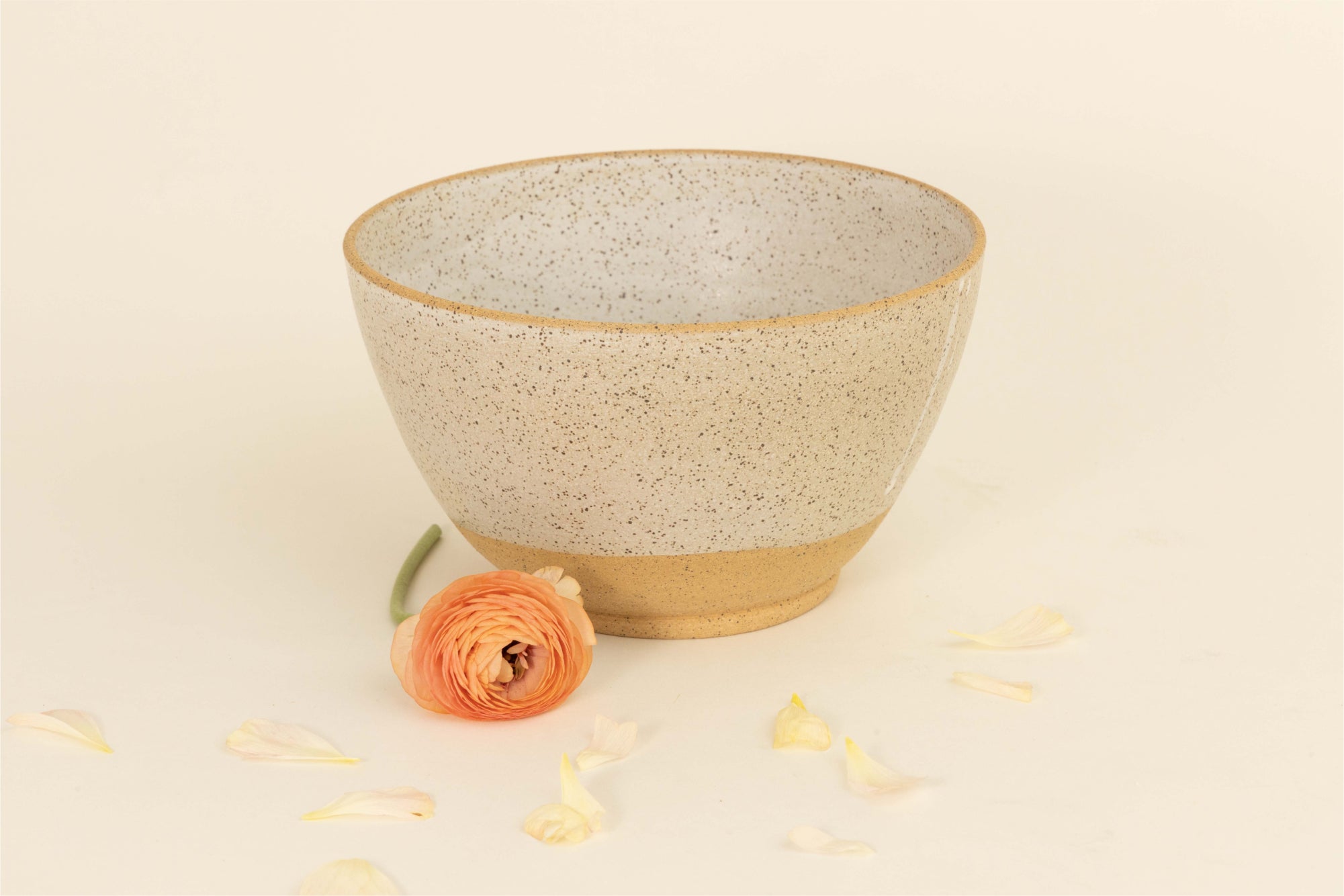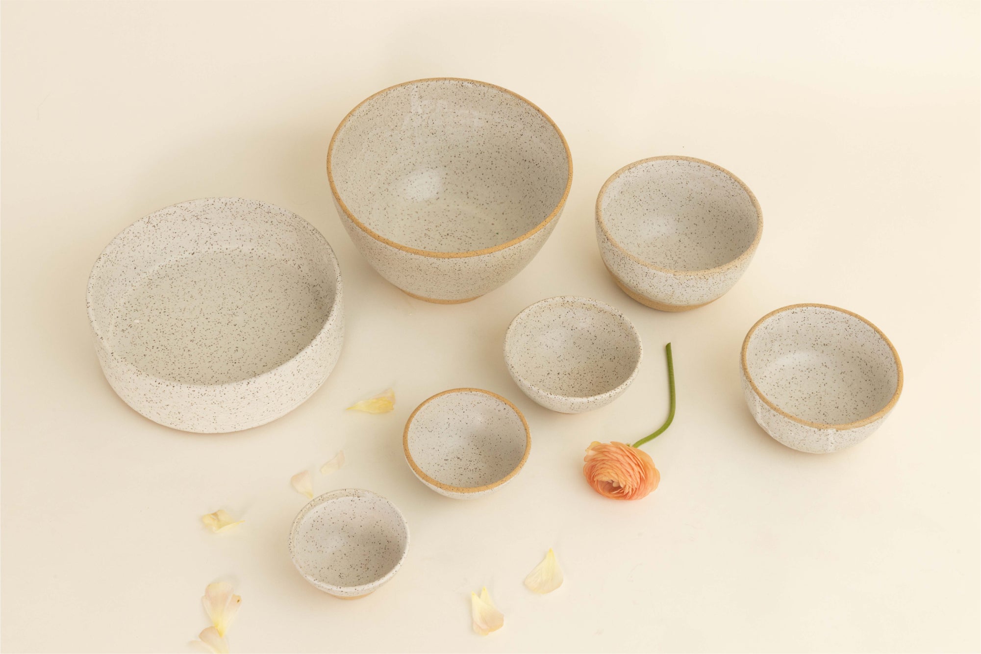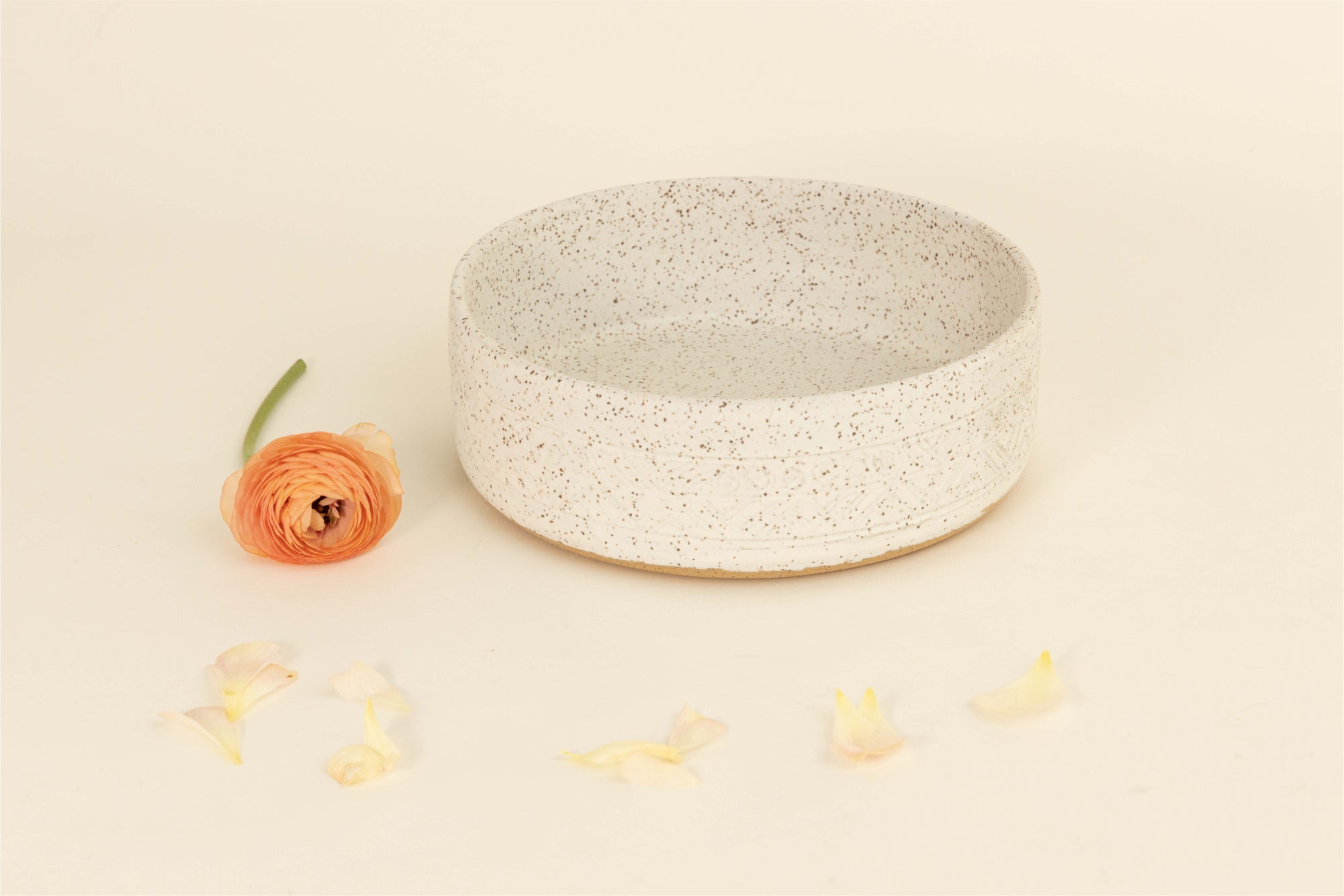 Platters, sidewall plates and bowls all wheel thrown and hand altered. For those of you who prefer just white. this line can be made both rustic and elegant, depending on the clays used. All pieces are glazed with the white marshmallow matte and hand carved design around the ring.